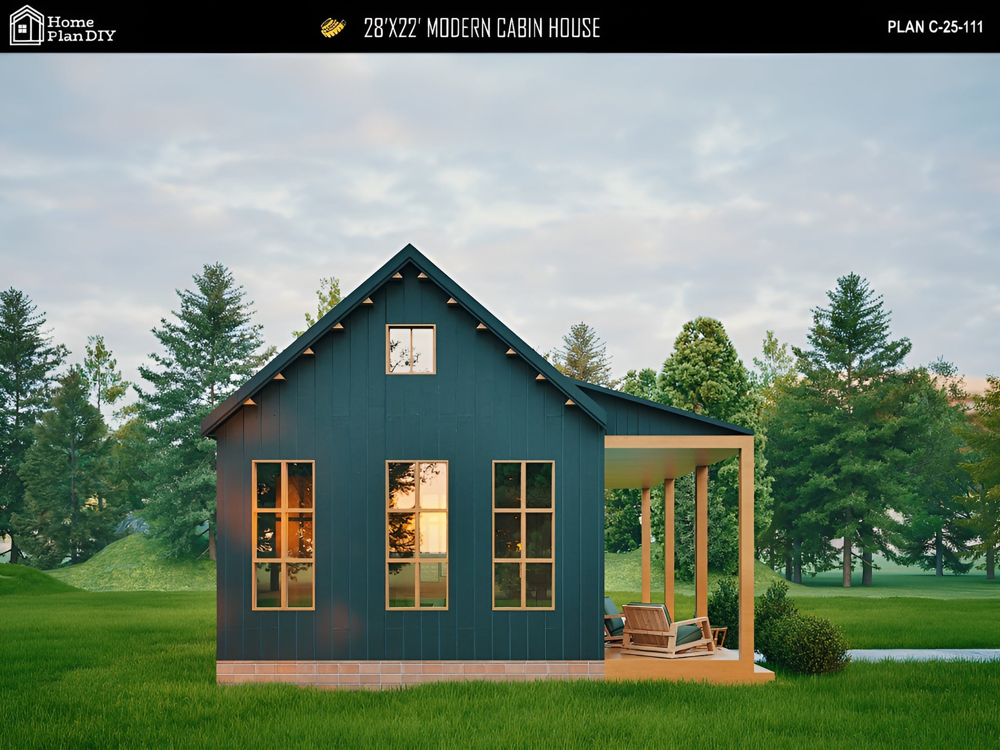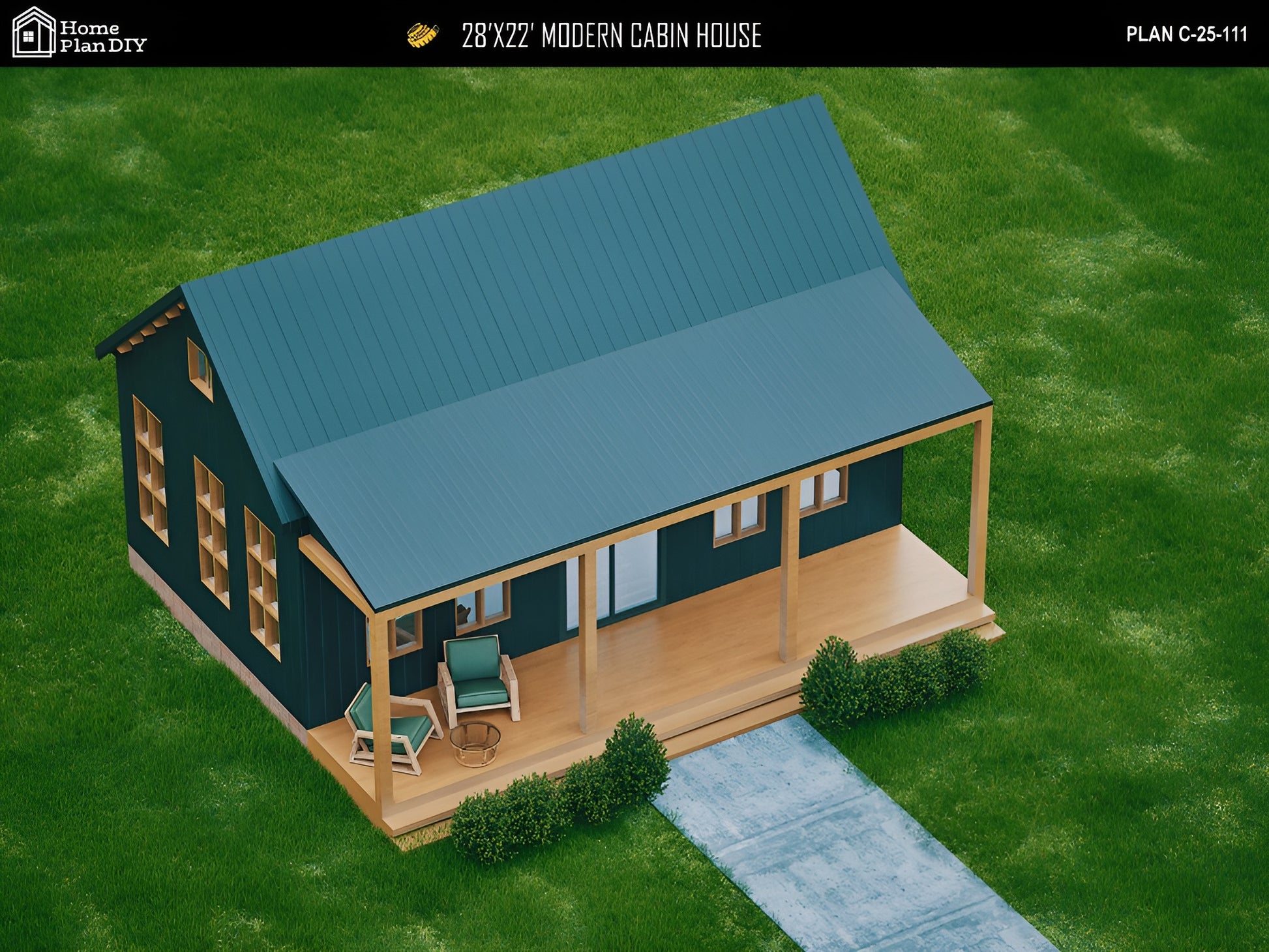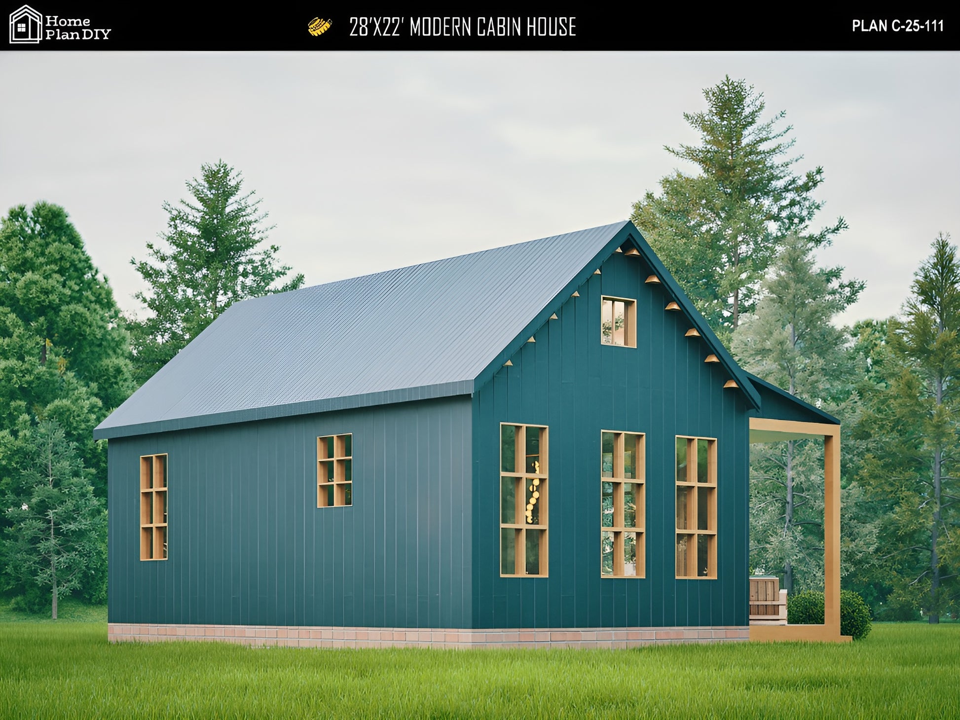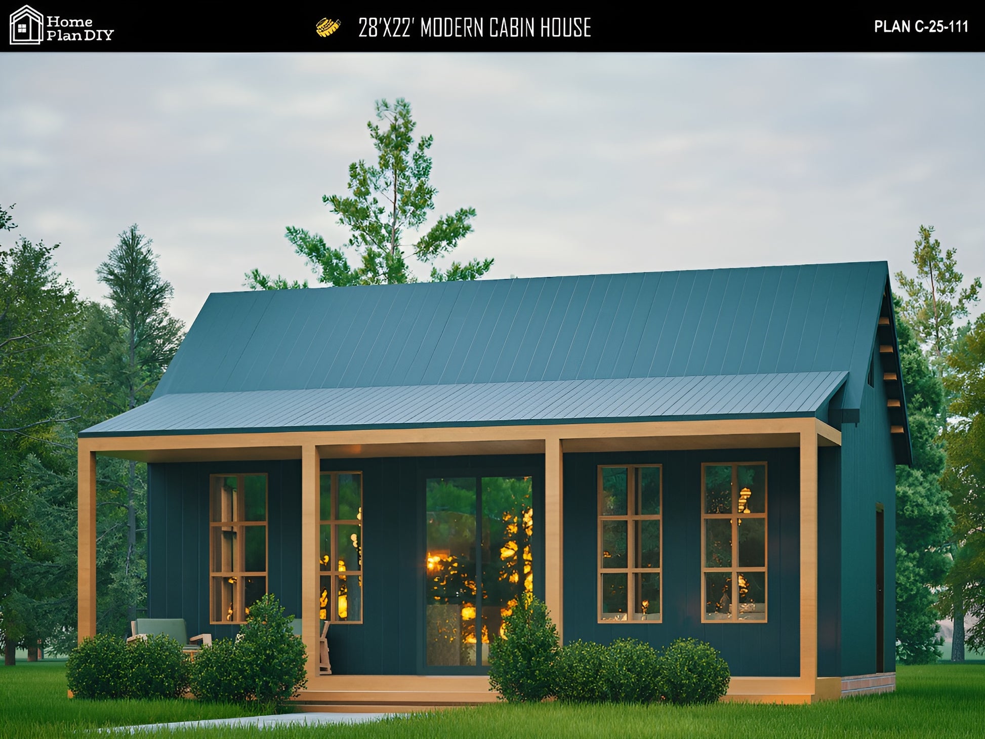 Discover the charm of compact modern living with this 28' x 22' Modern Cabin Plan with Loft , a beautifully detailed 1 bedroom, 1 bath cottage design perfect for DIY builders, homeowners, or Airbnb investors. This cozy 602 sq. ft. home blends simplicity, warmth, and functionality, ideal for weekend getaways, guest houses, or small living projects.