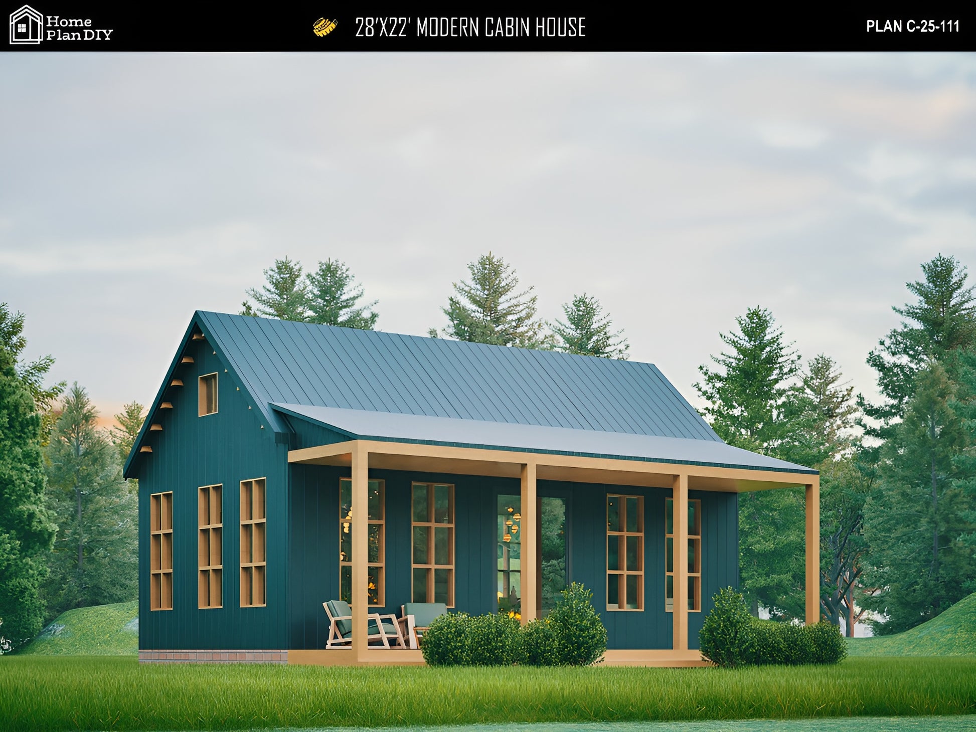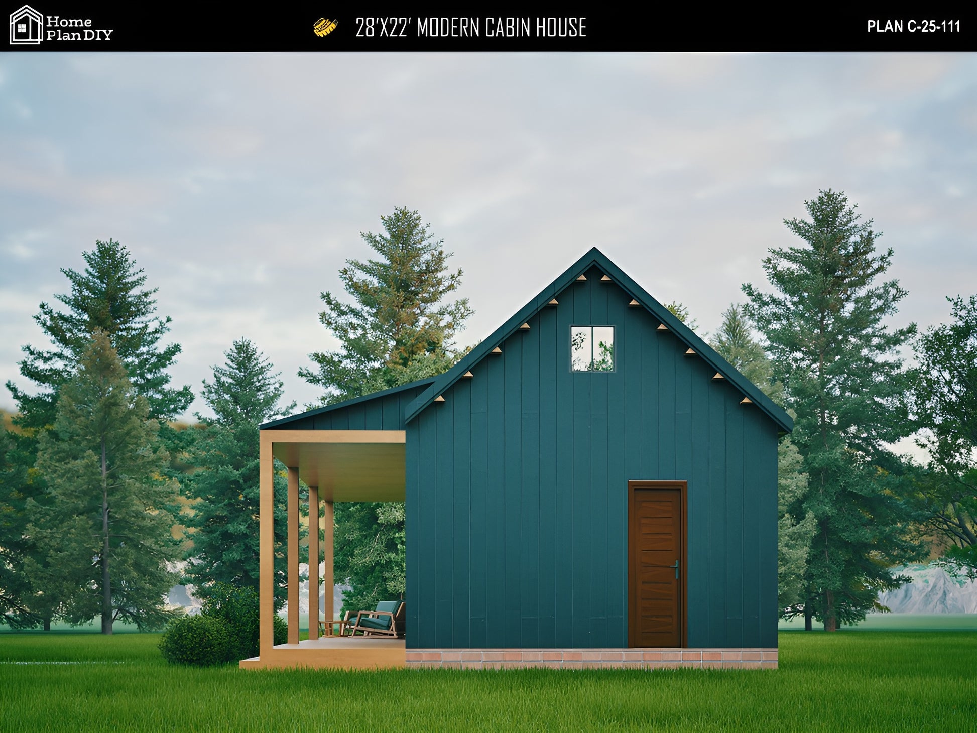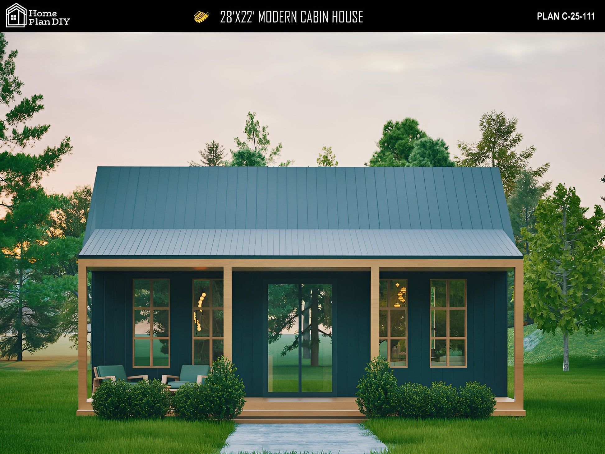 Discover the charm of compact modern living with this 28' x 22' Modern Cabin Plan with Loft , a beautifully detailed 1 bedroom, 1 bath cottage design perfect for DIY builders, homeowners, or Airbnb investors. This cozy 602 sq. ft. home blends simplicity, warmth, and functionality, ideal for weekend getaways, guest houses, or small living projects.
