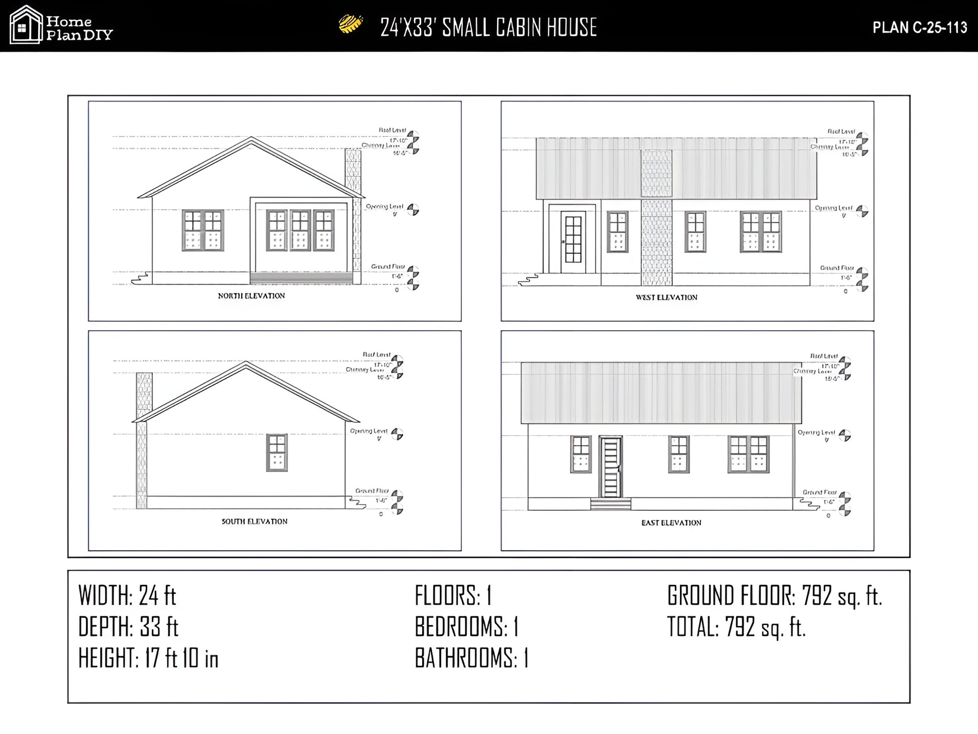 - Elevations (Front, Rear, Left, Right)