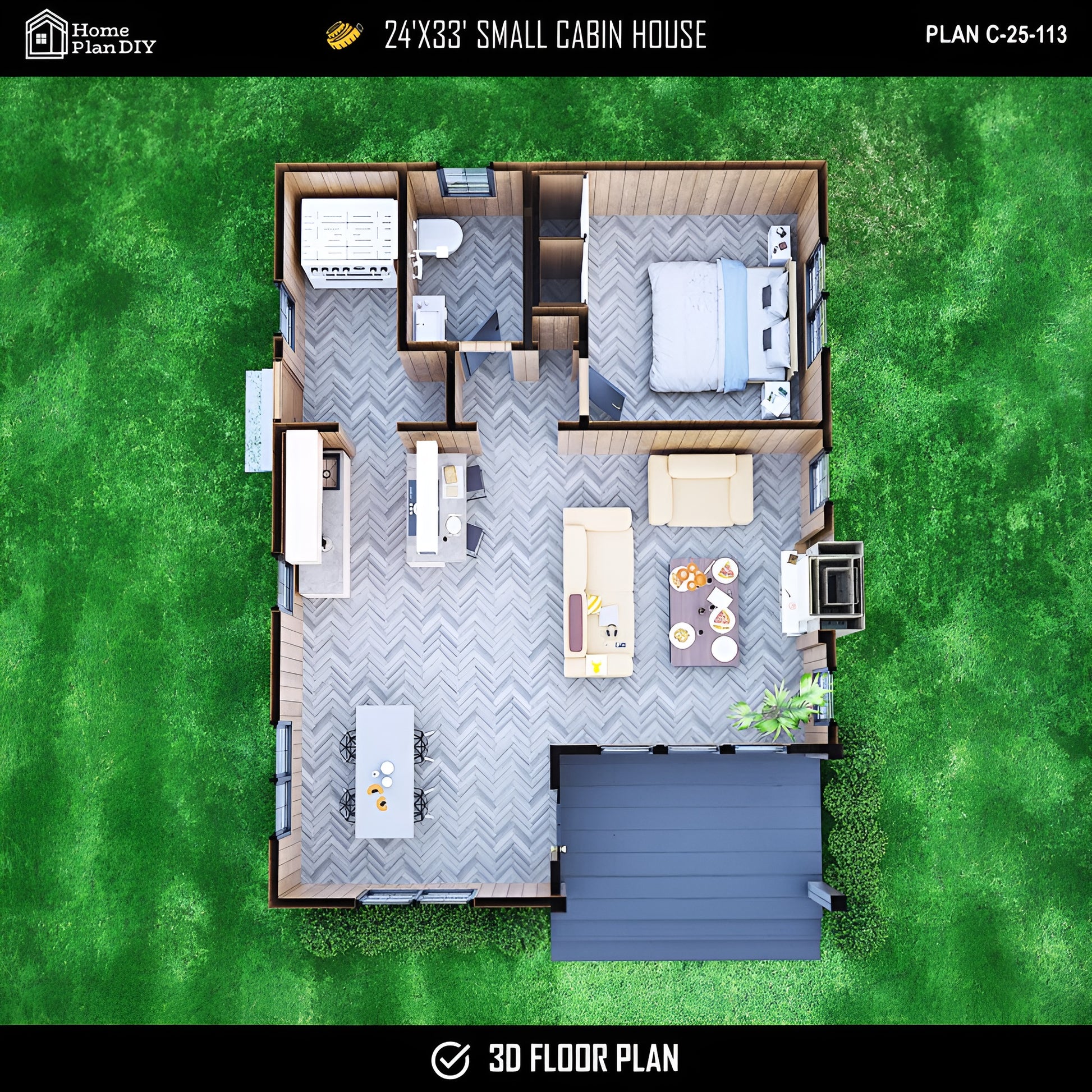Build your dream small home today! This 24′ × 33′ Modern Cottage Cabin Plan brings simplicity, comfort, and natural beauty together, ideal for your next DIY build, rental retreat, or peaceful country escape.