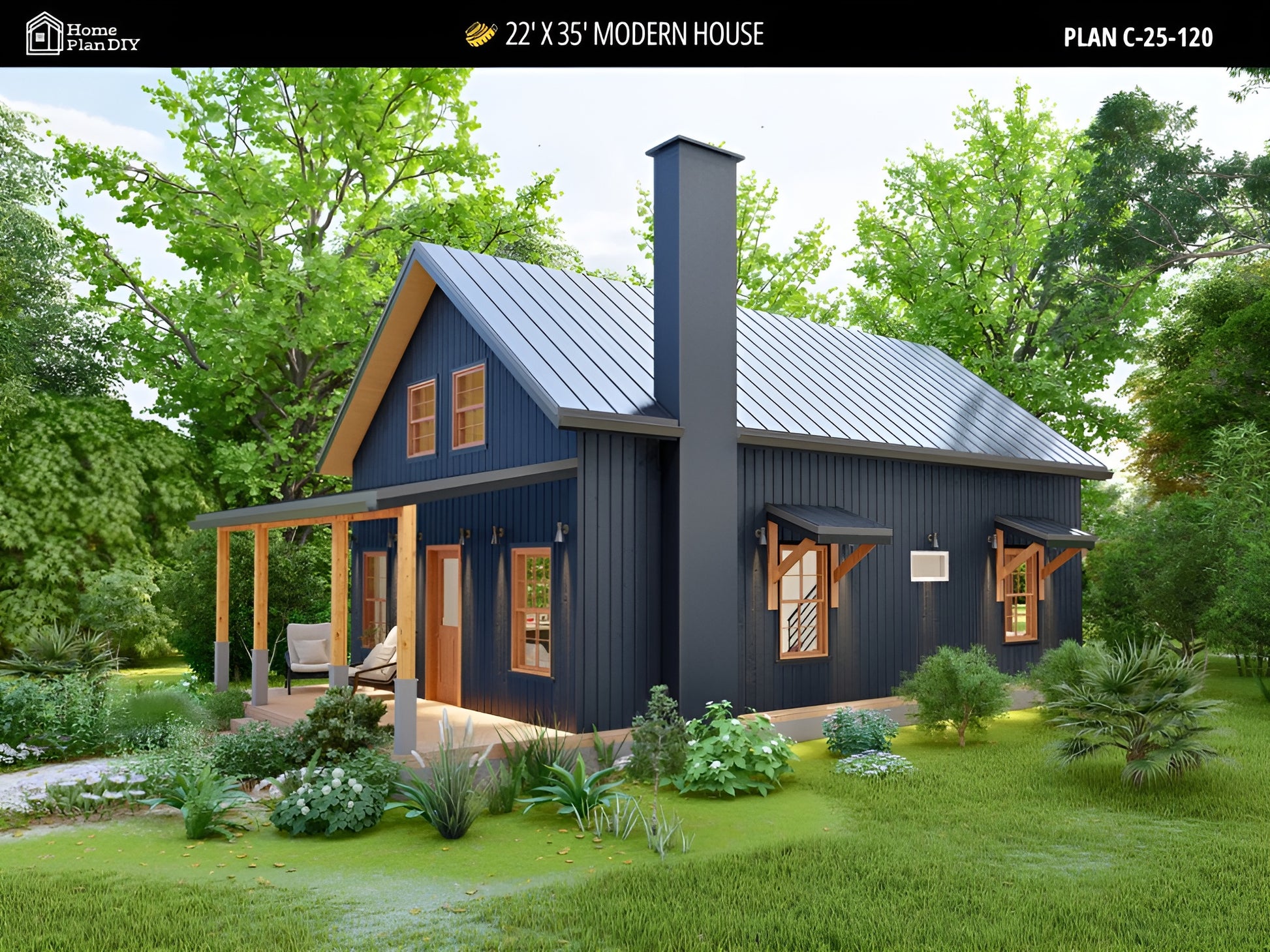 - Exterior Style: Modern cottage / cabin design