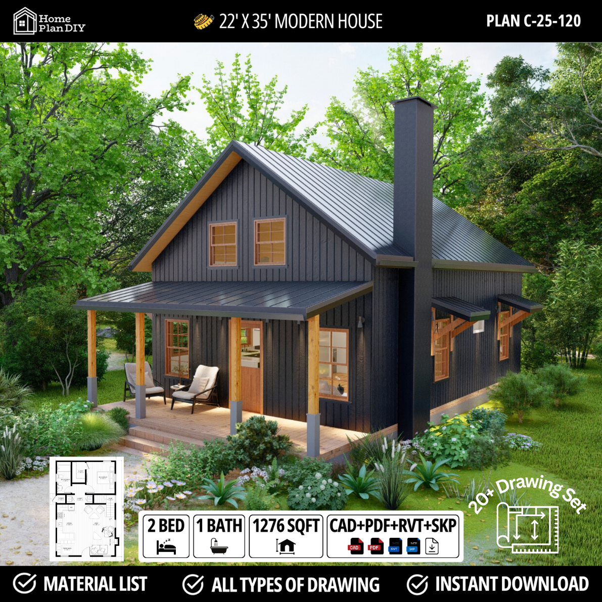 Build confidently and creatively with Home Plan DIY, your trusted source for small cabin, modern cottage, and loft house architectural floor plans.