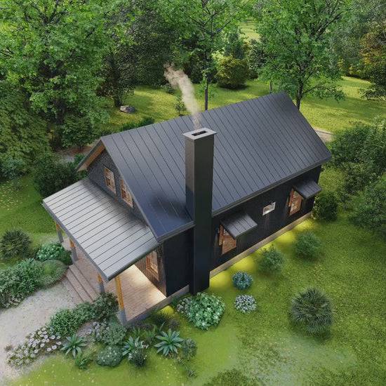 Estimated construction cost typically ranges from $95,000 to $165,000, depending on location, materials, labor rates, and finish level. This averages approximately $120–$180 per sq ft, making it an excellent option for affordable cabin or rental construction.