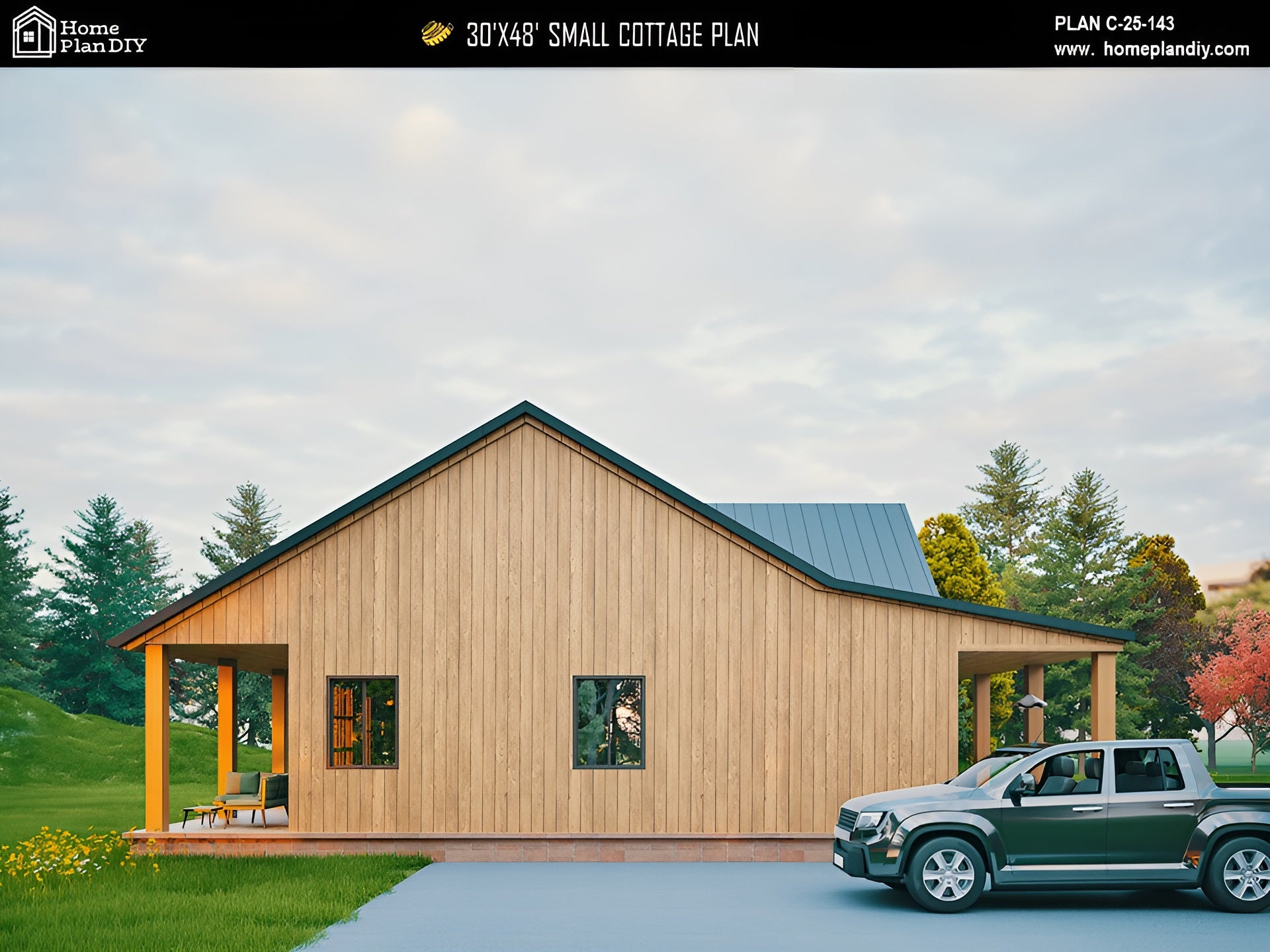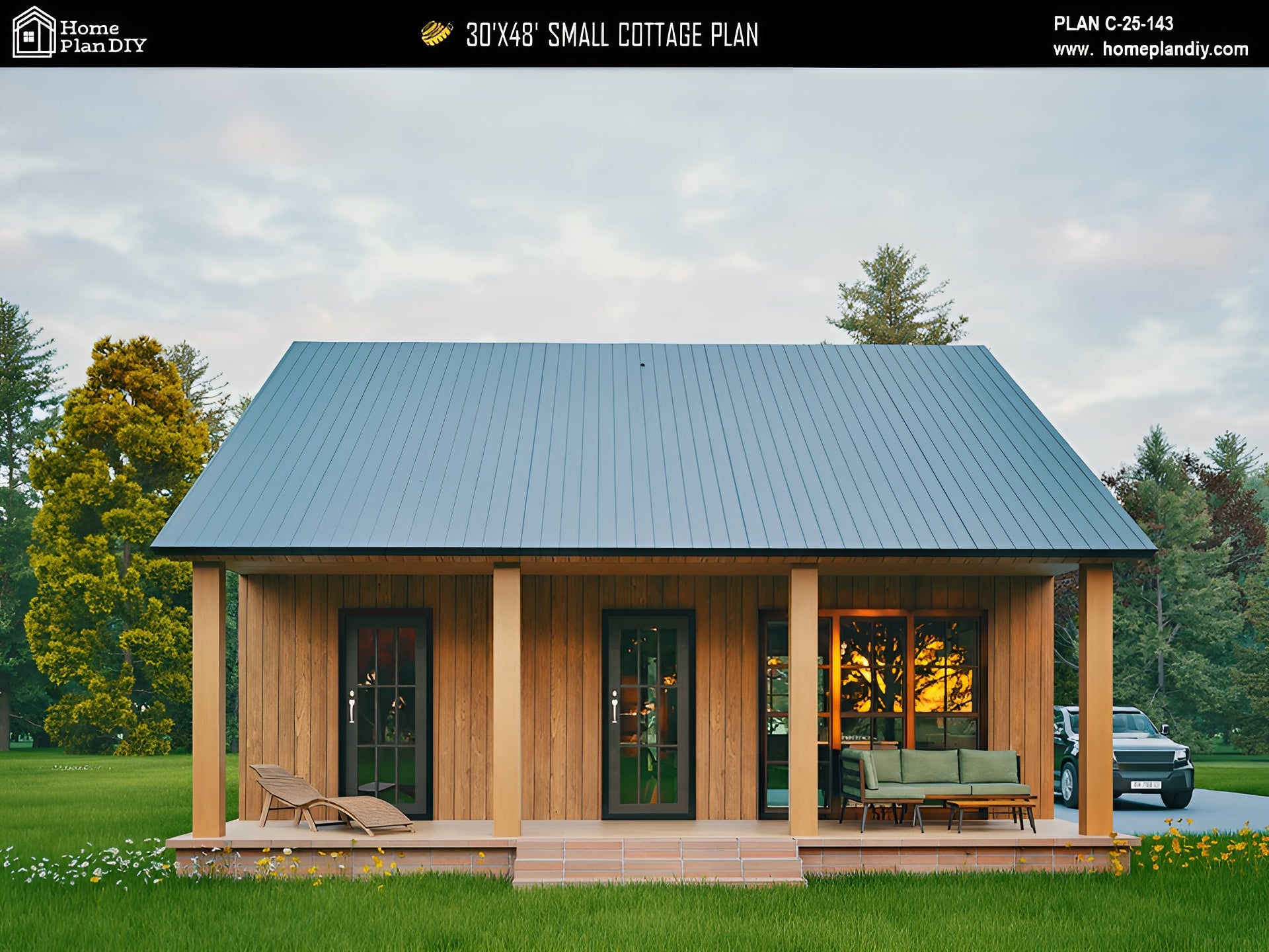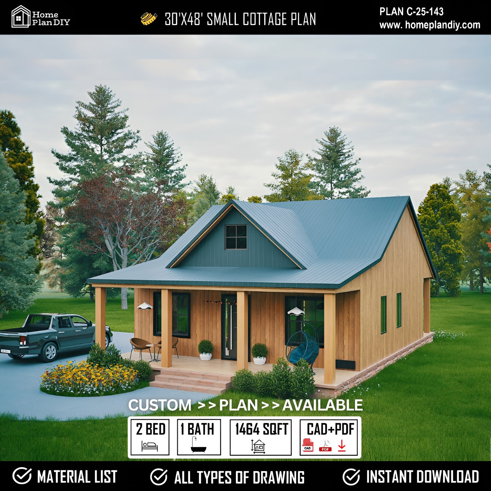 Bring classic Adirondack charm to life with this 30×48 modern cottage house plan. Featuring 2 bedrooms, 1.5 baths, cathedral ceilings, and over 2,000 sq.ft. of living space, this design blends rustic character with functional modern living. Perfect as a vacation retreat, guest house, or full-time residence, this plan is crafted for DIY builders who love cozy yet spacious layouts.