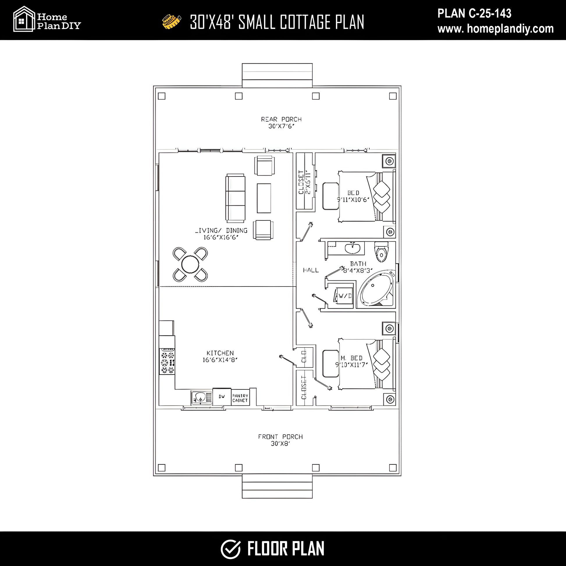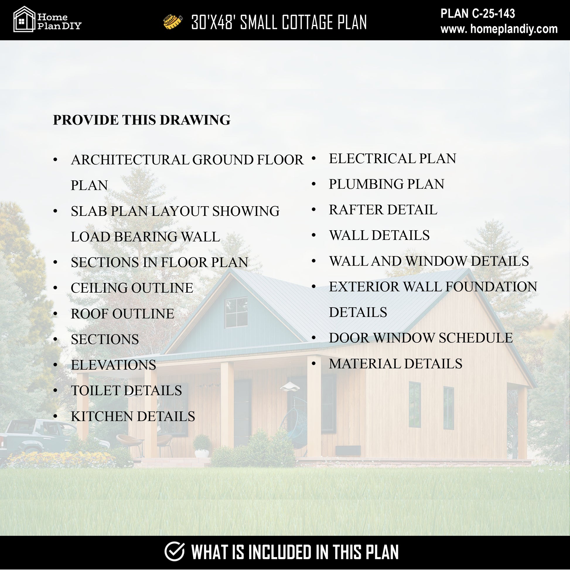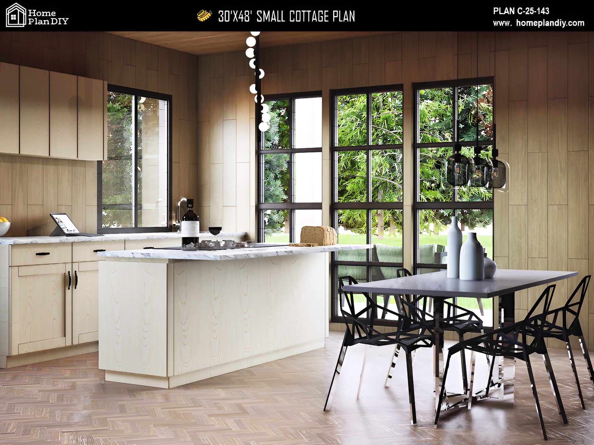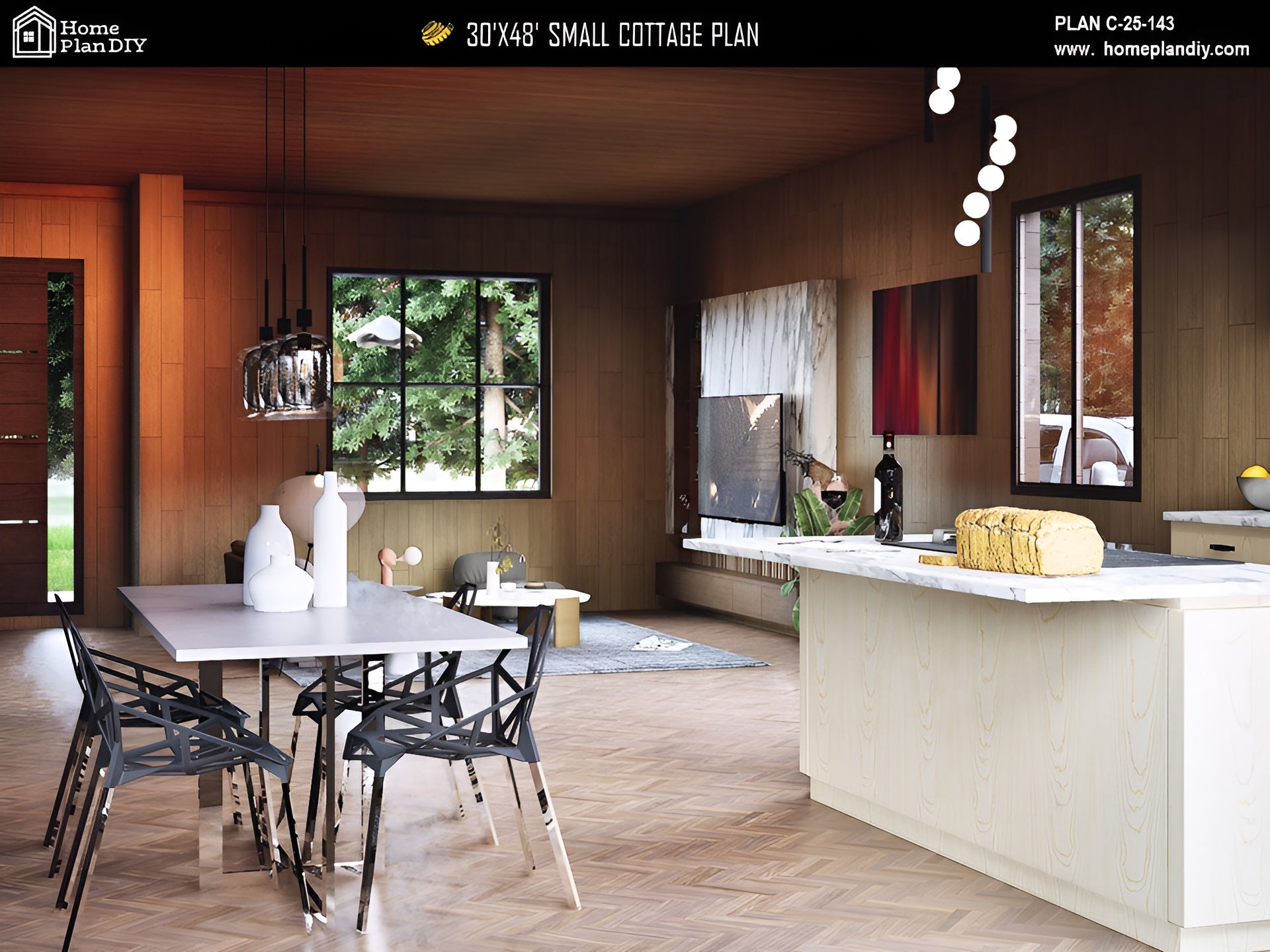 Bring classic Adirondack charm to life with this 30×48 modern cottage house plan. Featuring 2 bedrooms, 1.5 baths, cathedral ceilings, and over 2,000 sq.ft. of living space, this design blends rustic character with functional modern living. Perfect as a vacation retreat, guest house, or full-time residence, this plan is crafted for DIY builders who love cozy yet spacious layouts.