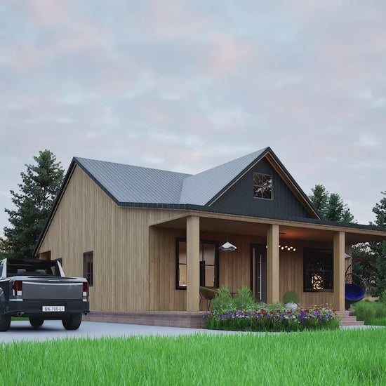 Create your dream modern custom cabin with this ready-to-build cottage house plan – a timeless design with the space and style you’ve been looking for.