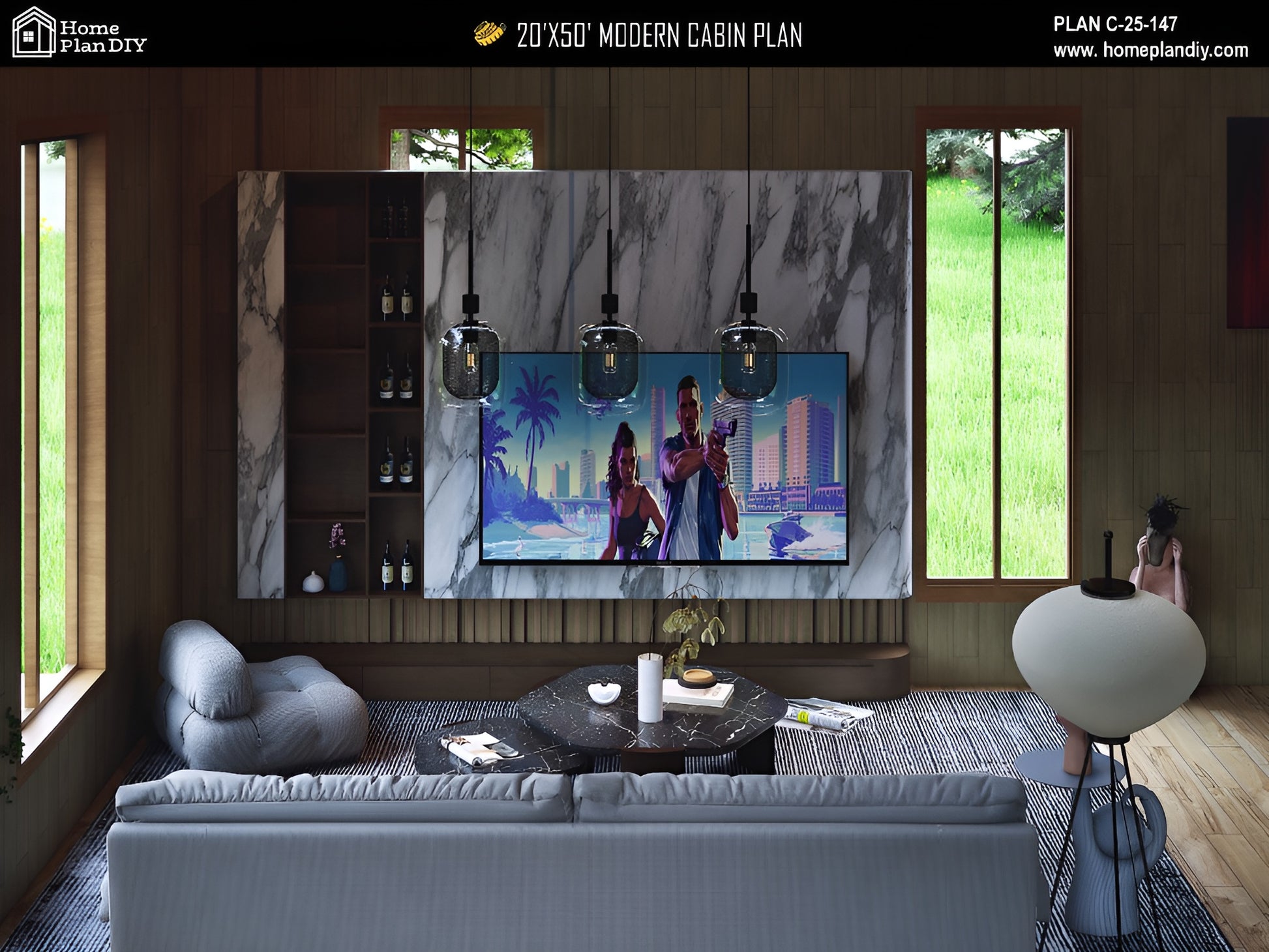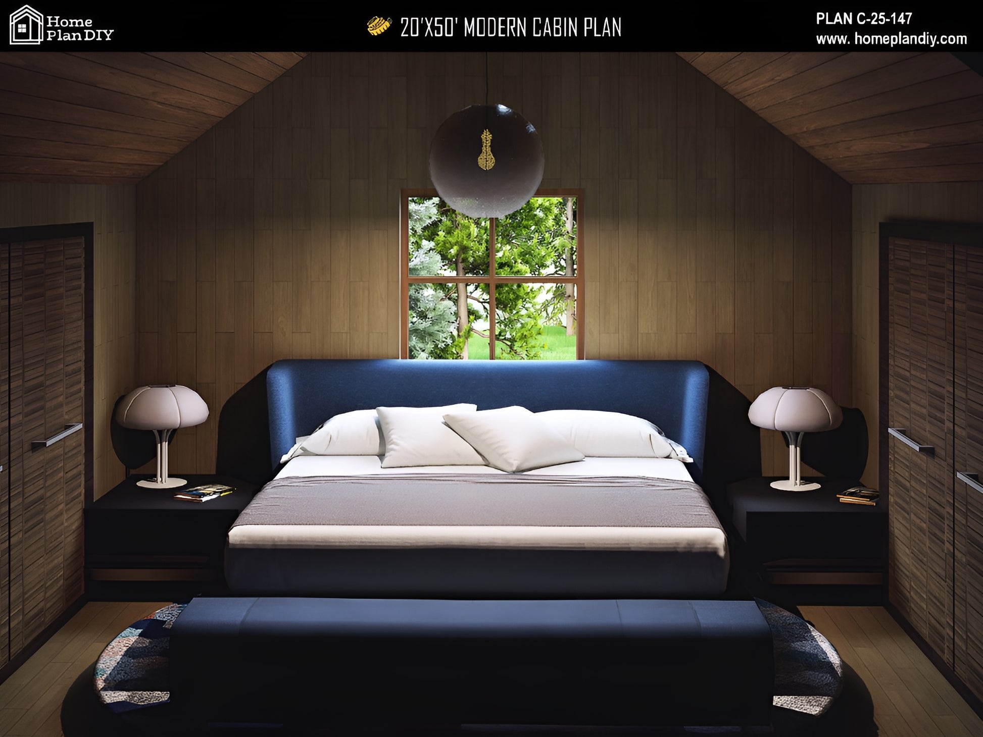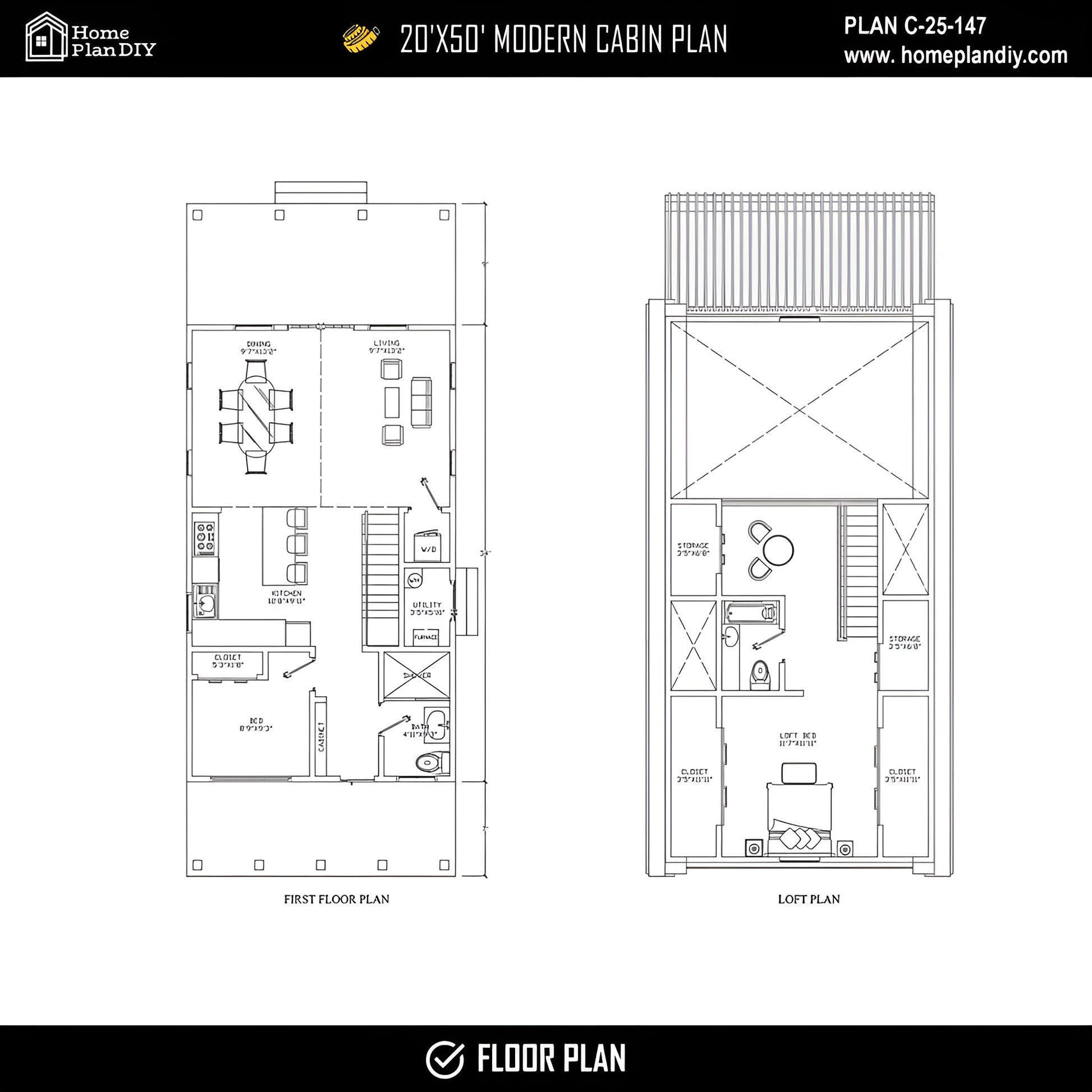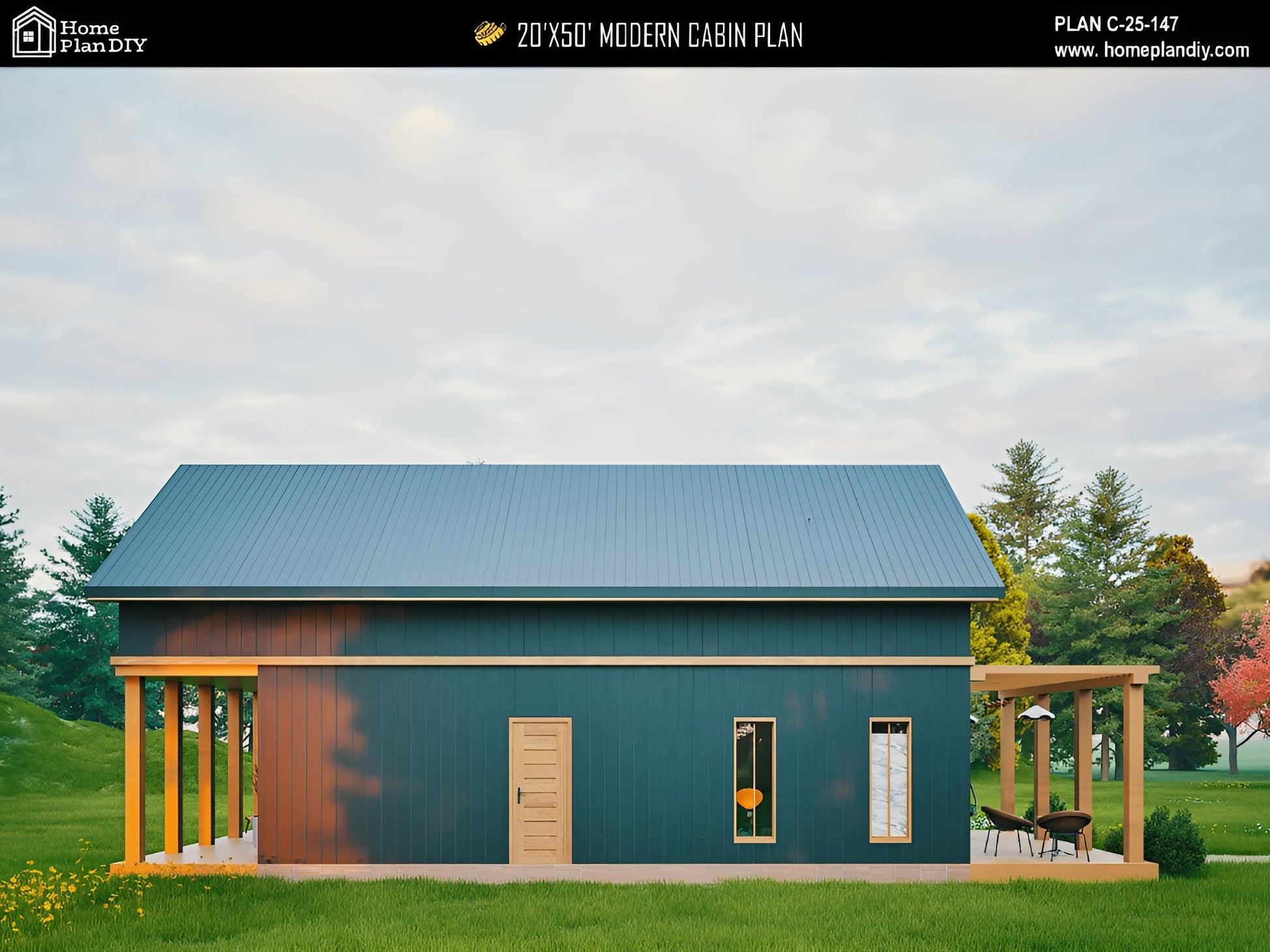 Build Your Dream Cabin Today! Discover our 20' x 50' Modern Small Cabin House Plan with Loft—crafted for cozy living with a spacious, efficient layout. Whether you’re building a family retreat, Airbnb rental, or personal getaway, this 2-bedroom, 2-bath design blends style, comfort, and practicality.