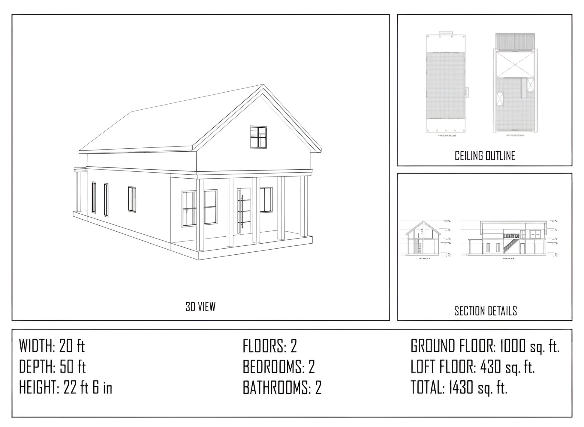 - Total Living Area: 1,430 sq. ft. (Ground Floor: 1,000 sq. ft. | Loft: 430 sq. ft.)