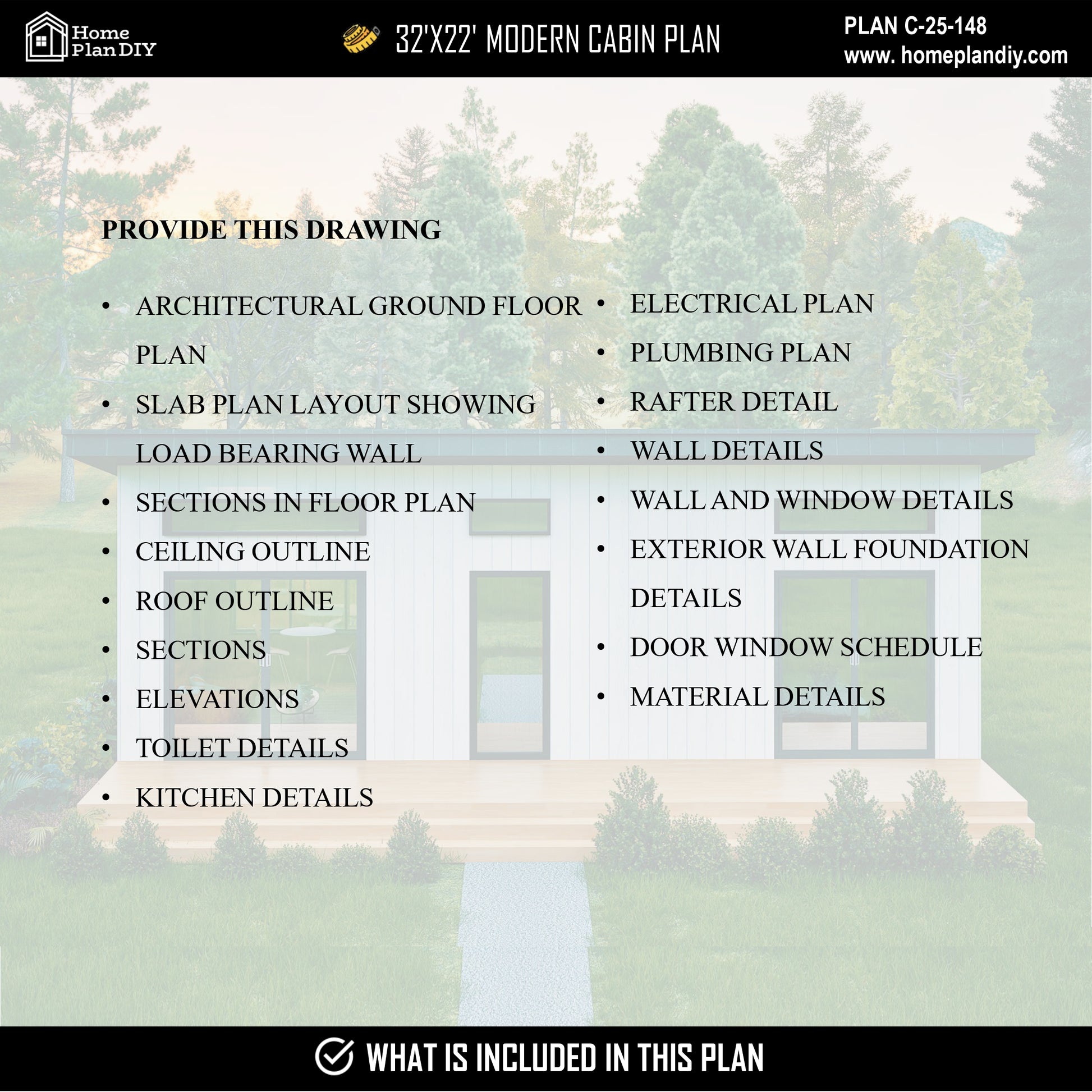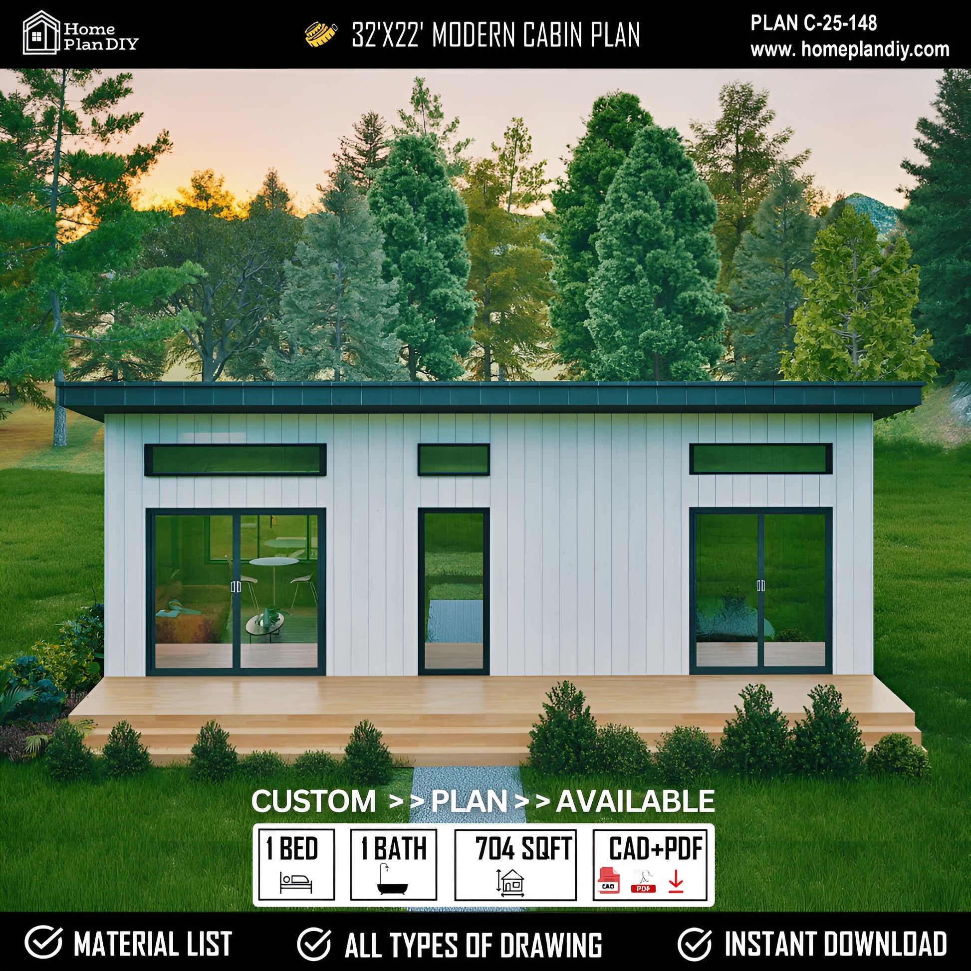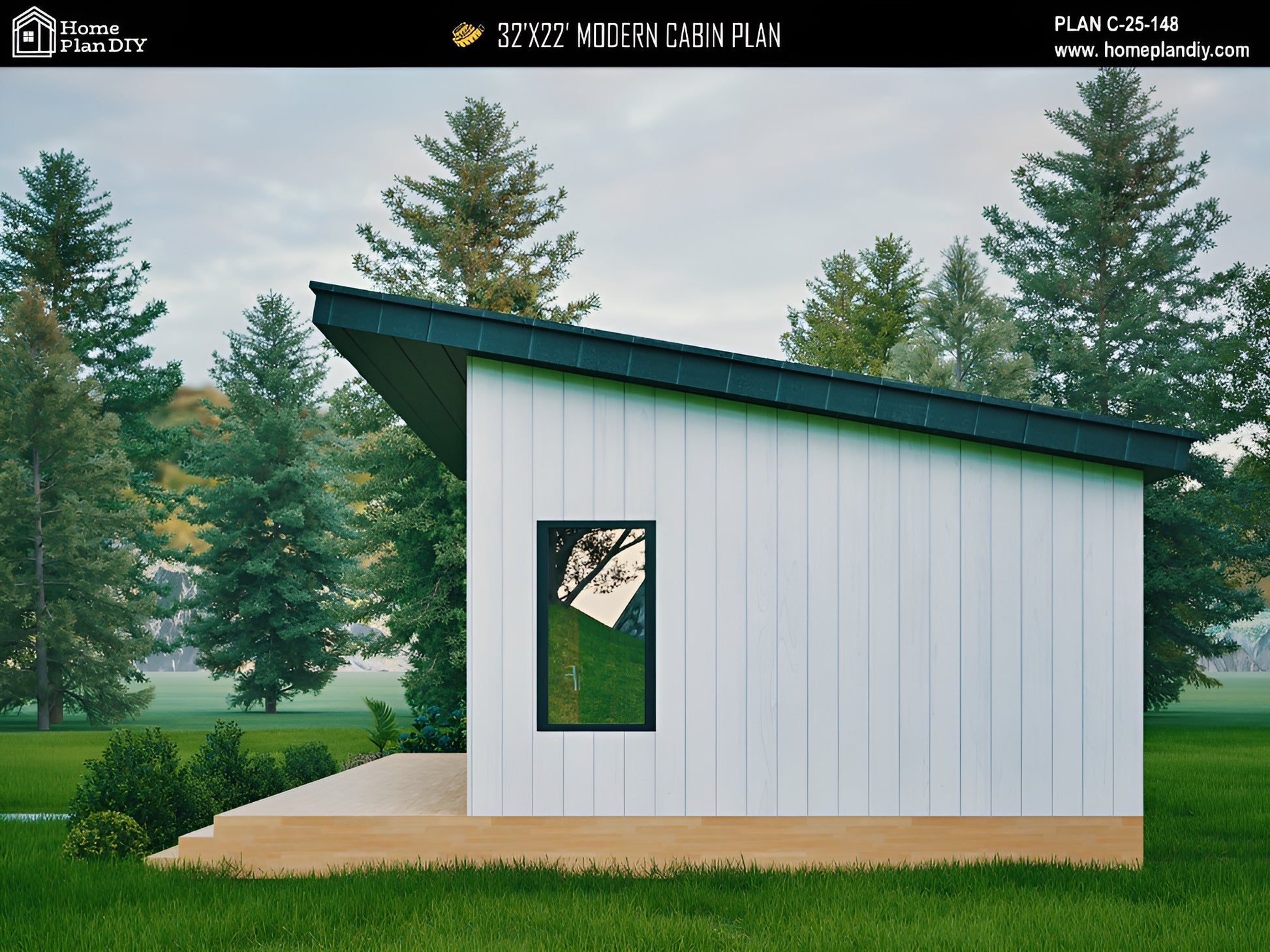 Start your minimalist lifestyle today with this ready-to-build Modern Cabin Plan from Home Plan DIY.