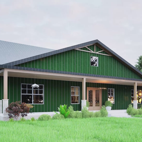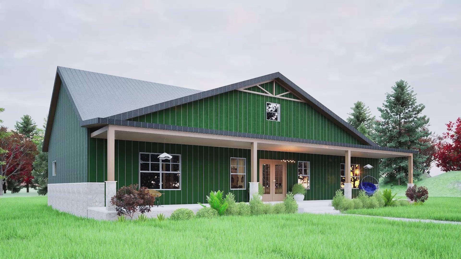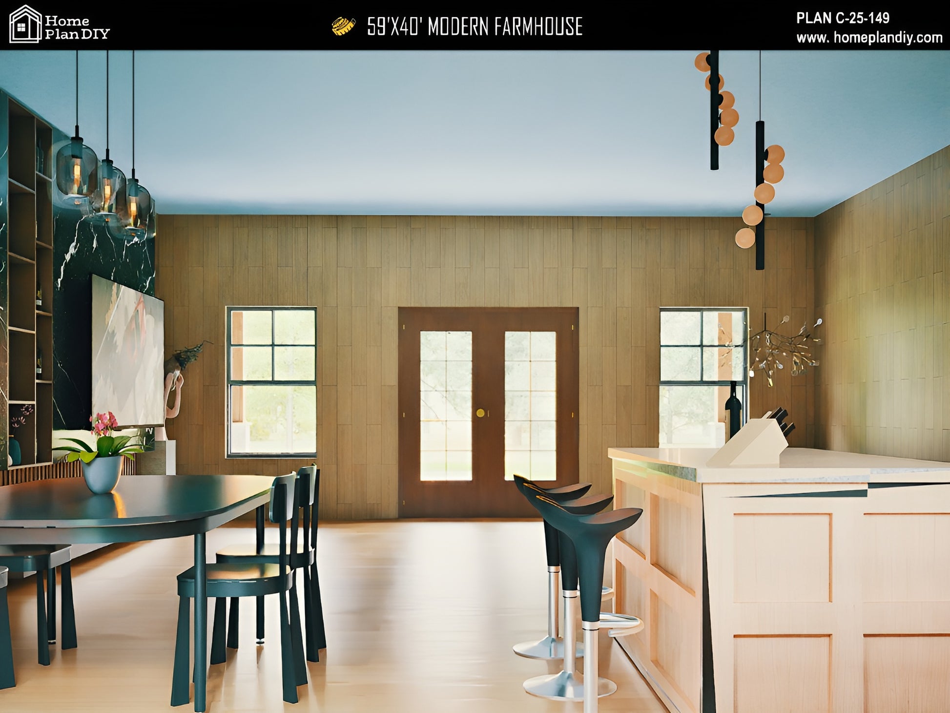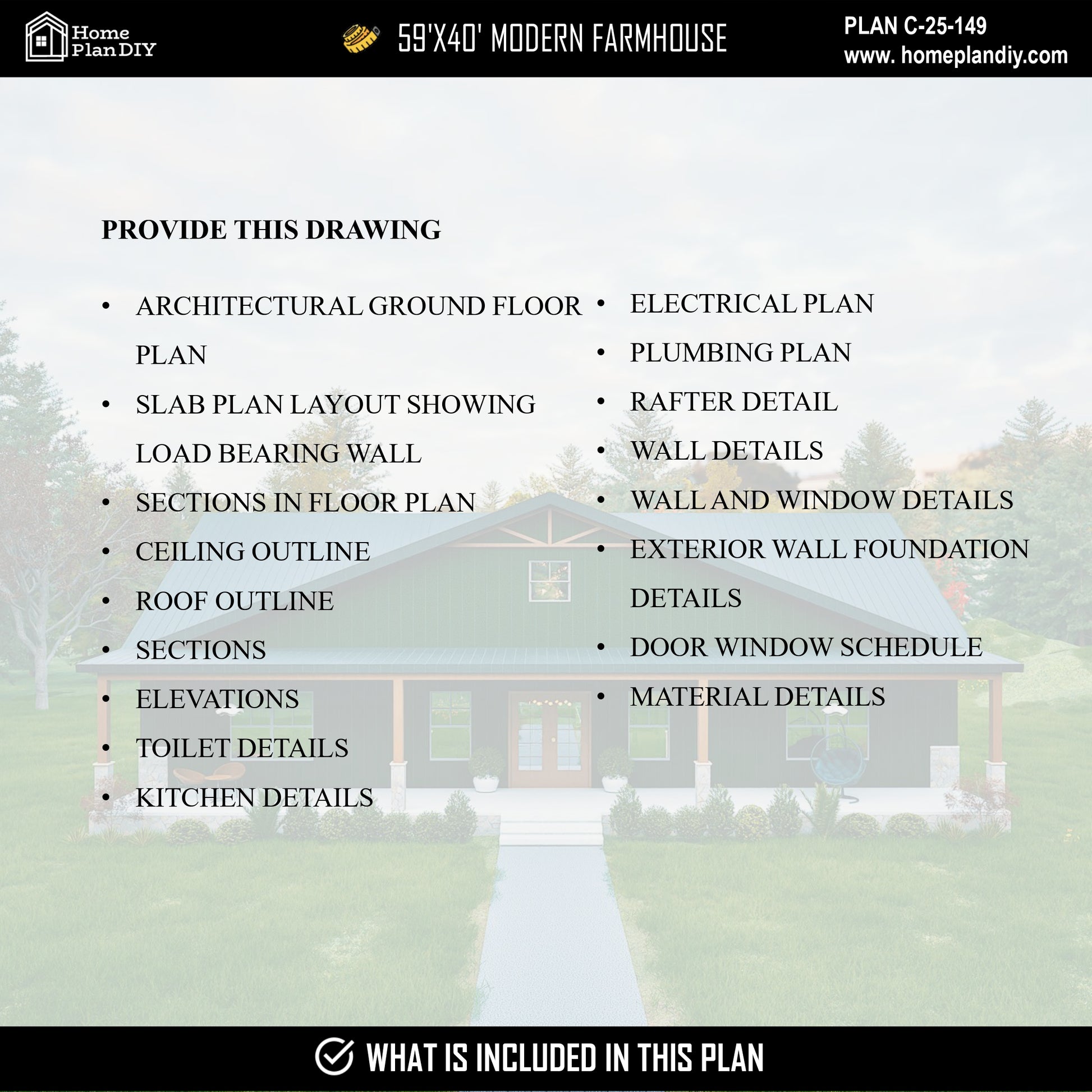 Bring classic country charm and modern design together with this 59’ × 40’ Modern Farmhouse Plan, featuring a detached 2-car garage, spacious open living, and cozy porch spaces. Designed for simplicity and comfort, this home is ideal for full-time living, guest homes, or Airbnb rentals.