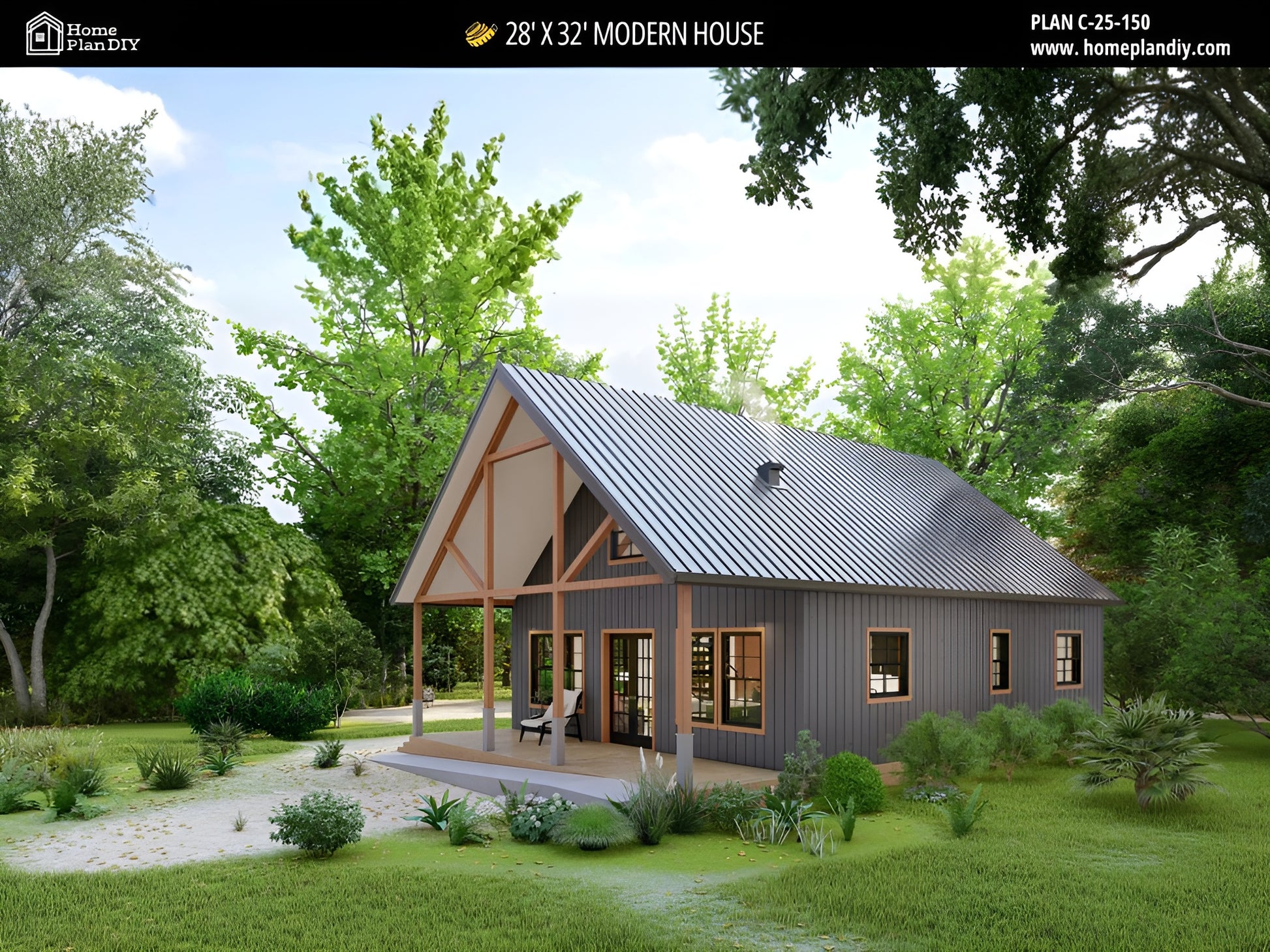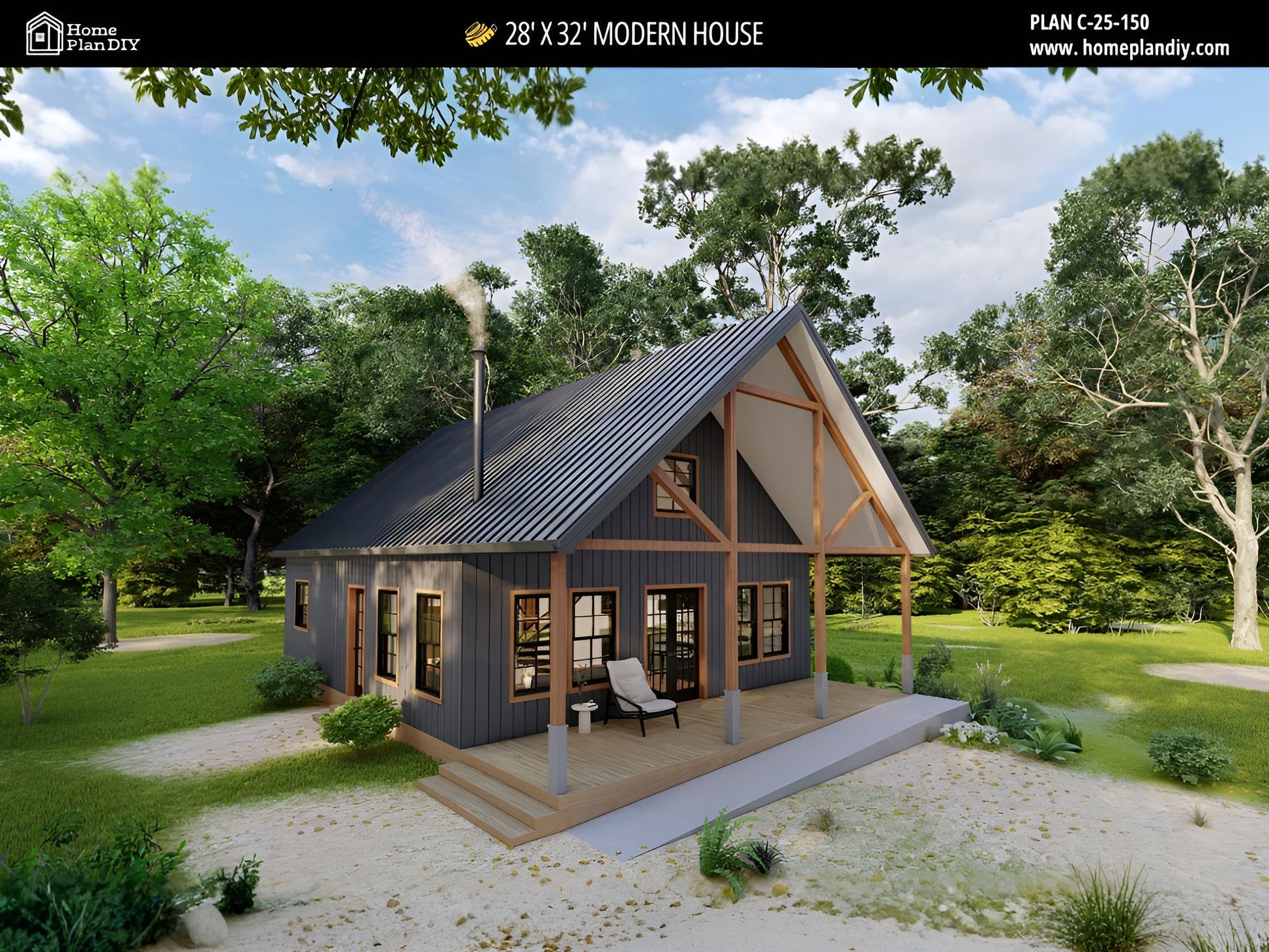 Build Your Modern Cabin Retreat – 28′ × 32′ Small Home Plan with Loft. Discover this modern cabin house plan with loft, featuring a 1,000+ sq. ft. open-concept layout designed for functional, stylish living. Perfect as a mountain getaway, lake cabin, Airbnb rental, or cozy small home, this plan offers a smart, efficient design for year-round comfort.